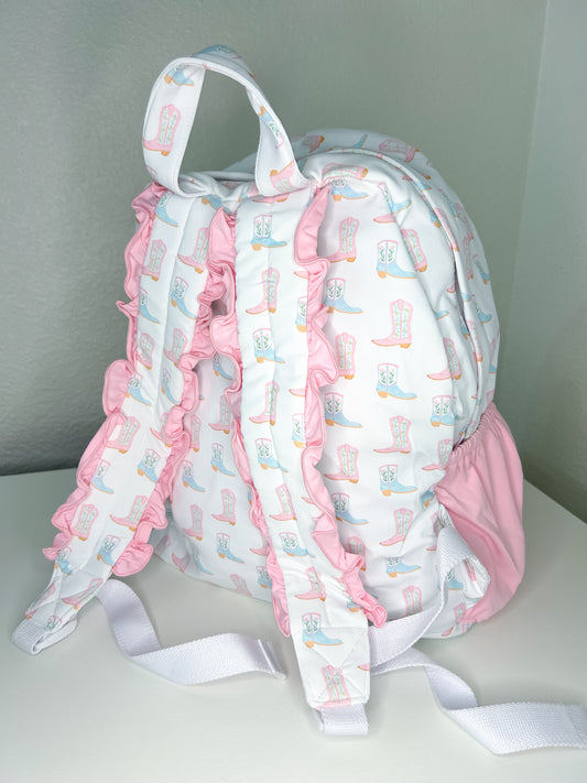 Boots & Bliss Pink Ruffle Hand Smocked Backpack