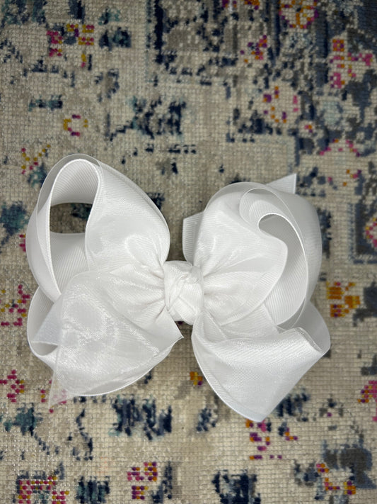 Layered Organza/Grosgrain Bow On Clip (White) 5.5”
