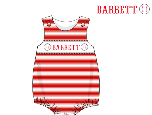 Pre-Order Red Custom Hand Smocked Game Day Bubble (Football and Baseball)