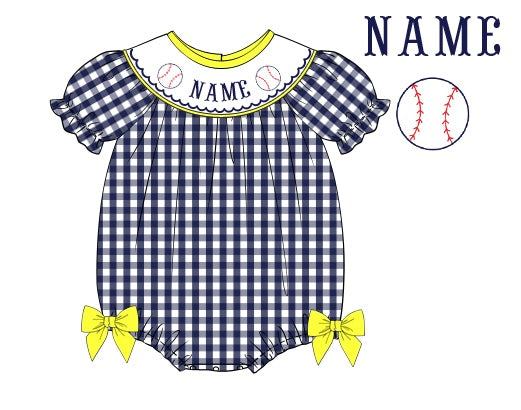 Pre-Order Navy Blue & Yellow Custom Hand Smocked Game Day Bubble (Football & Baseball)