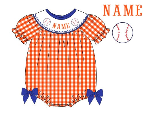 Pre-Order Orange & Blue Custom Hand Smocked Game Day Bubble (Football & Baseball)