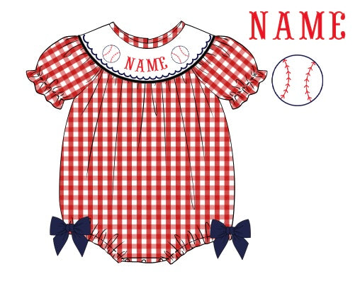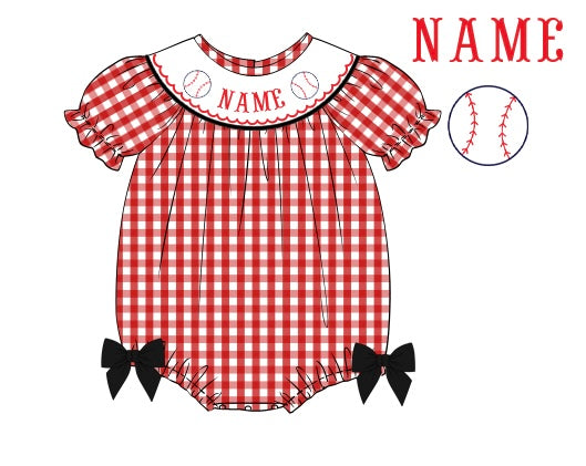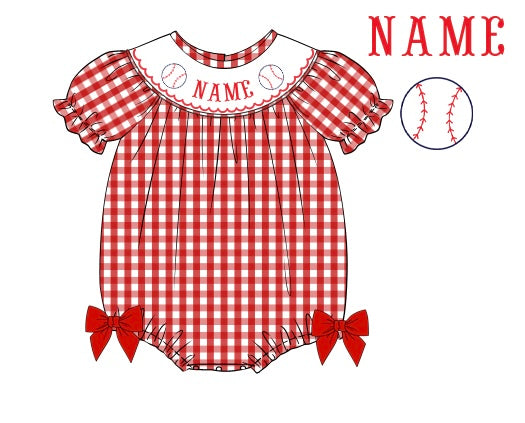Pre-Order Red & White Custom Hand Smocked Game Day Bubble (Football & Baseball)
