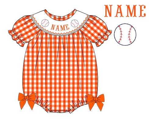 Pre-Order Orange & White Custom Hand Smocked Game Day Bubble (Football & Baseball)