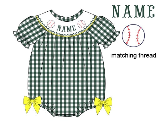 Pre-Order Green & Yellow Custom Hand Smocked Bubble (Football & Baseball)