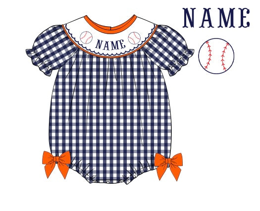 Pre-Order Navy Blue & Orange Custom Hand Smocked Game Day Bubble (Football & Baseball)
