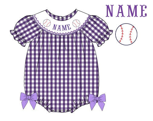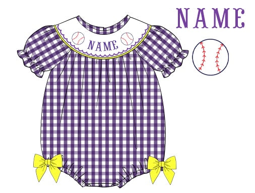 Pre-Order Purple & Yellow Custom Hand Smocked Game Day Bubble (Football & Baseball)