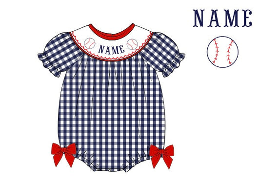 Pre-Order Red & Navy Blue Custom Hand Smocked Game Day Bubble (Football & Baseball)
