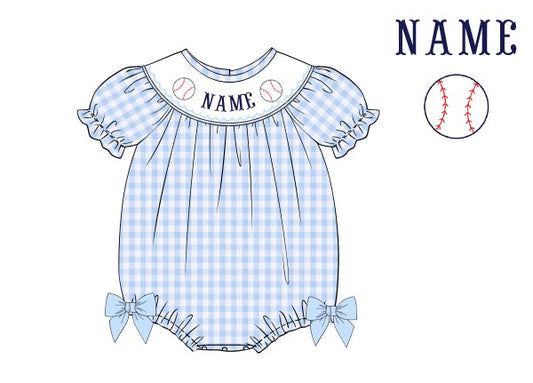 Pre-Order Light Blue Hand Smocked Game Day Bubble (Football & Baseball)