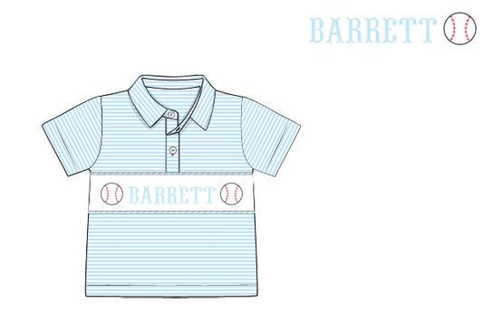 Pre-Order Light Blue Custom Hand Smocked Game Day Polo (Football and Baseball)