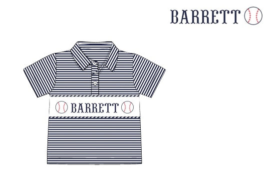 Pre-Order Navy Custom Hand Smocked Game Day Polo (Football and Baseball)