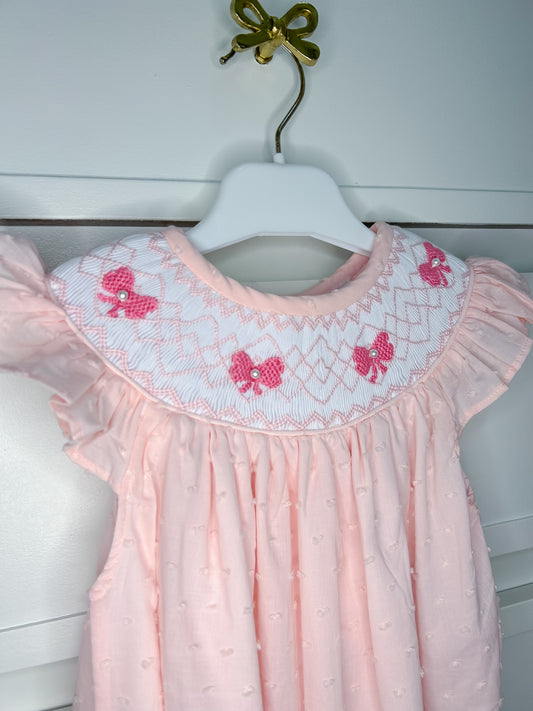 Hand Smocked Swiss Dot Bow Pearl Bubble