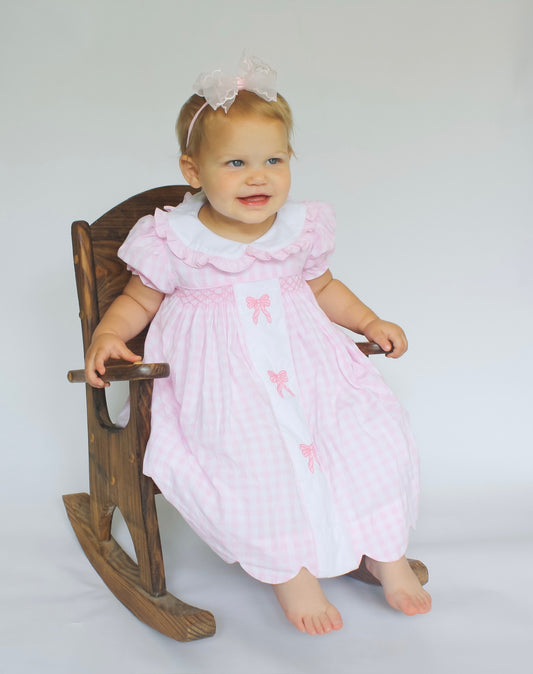 Hand Smocked Bow Dress Pink Gingham