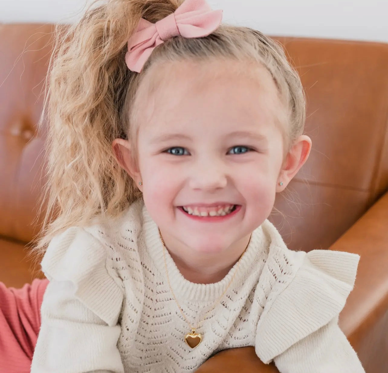 Classic girls 14K gold-plated (over sterling silver) heart locket that opens to reveal a space for a small momento.