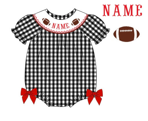 Pre-Order Black & Red Custom Hand Smocked Game Day Bubble (Football & Baseball)