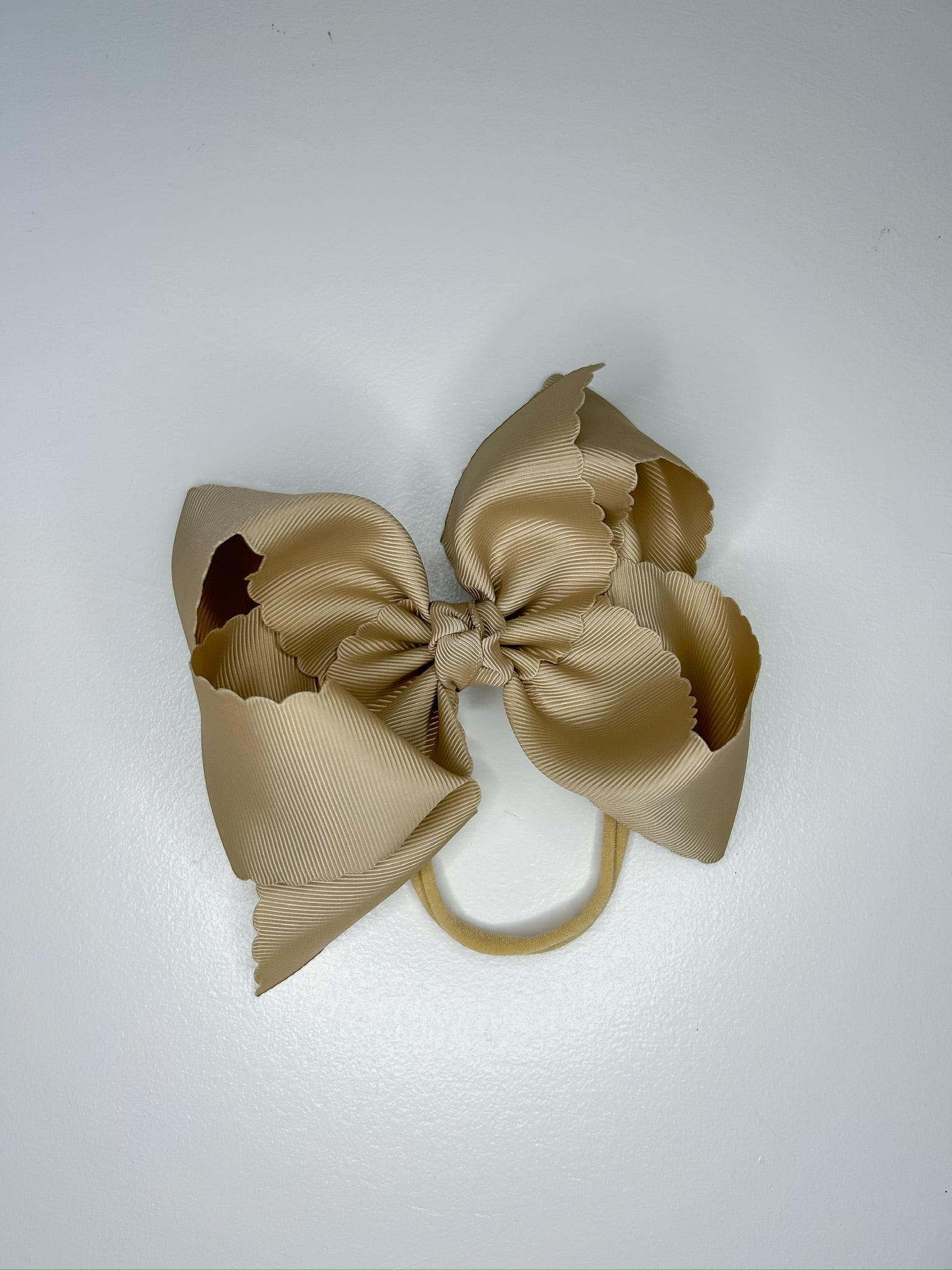 Scalloped Edge Bow with pantyhose Headband (5.5”)